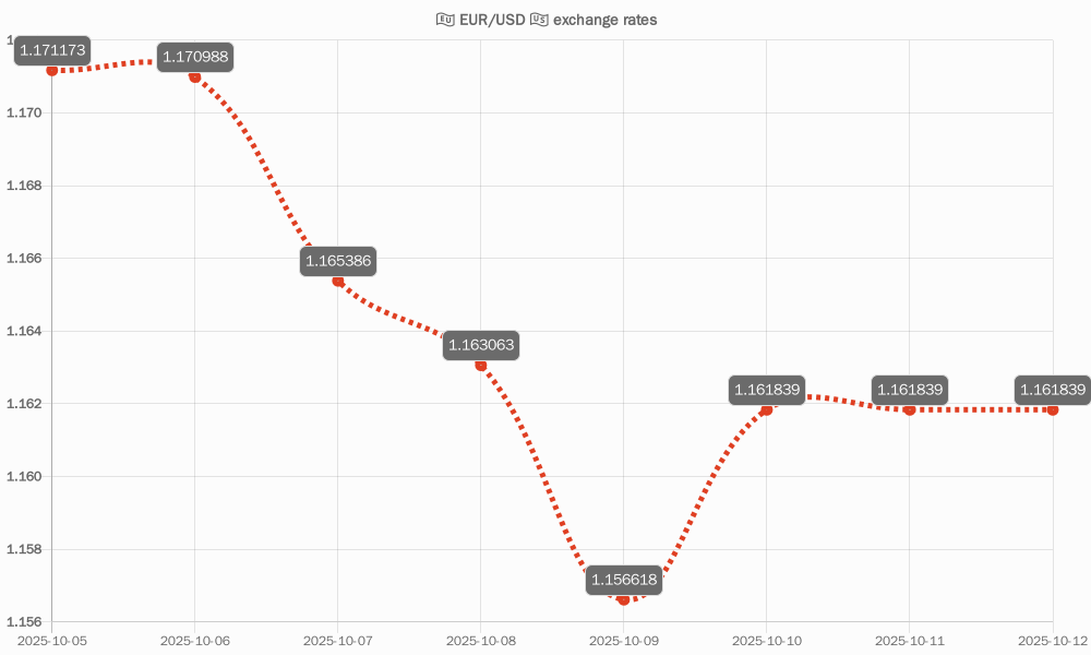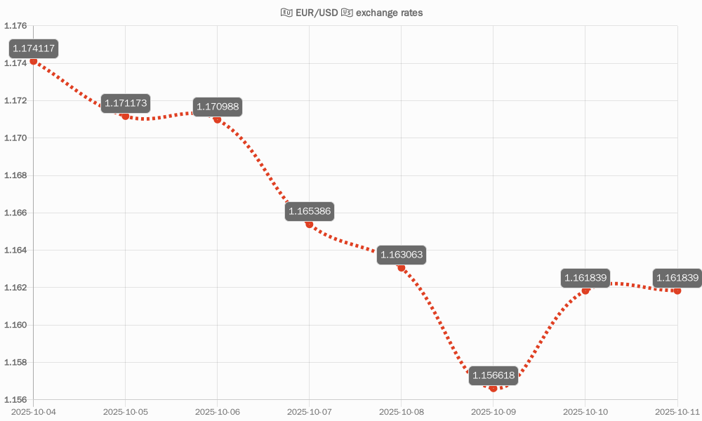 Today's EUR/USD exchange rate: 1 EUR = 1.161839 US-Dollar ⬇️