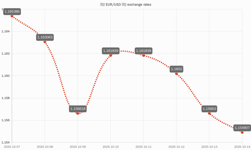 Today's EUR/USD exchange rate: 1 EUR = 1.154907 US-Dollar ⬇️