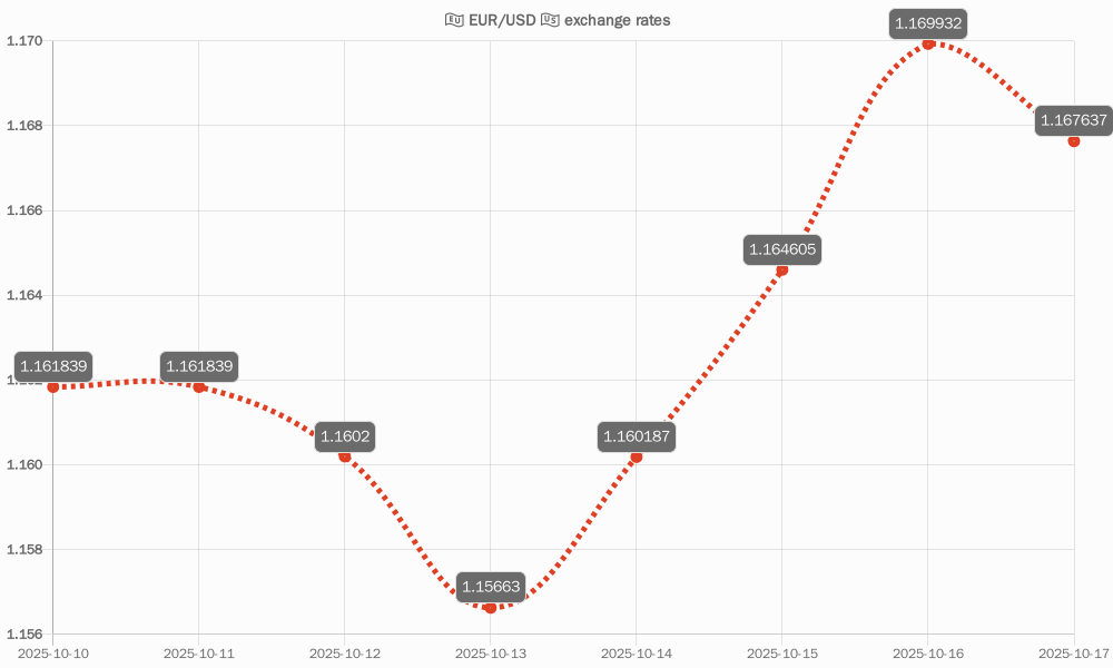Today's EUR/USD exchange rate: 1 EUR = 1.167637 US-Dollar ⬇️