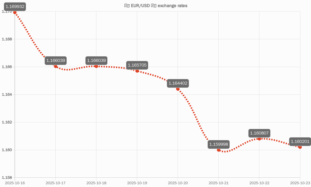 Today's EUR/USD exchange rate: 1 EUR = 1.160201 US-Dollar ⬇️