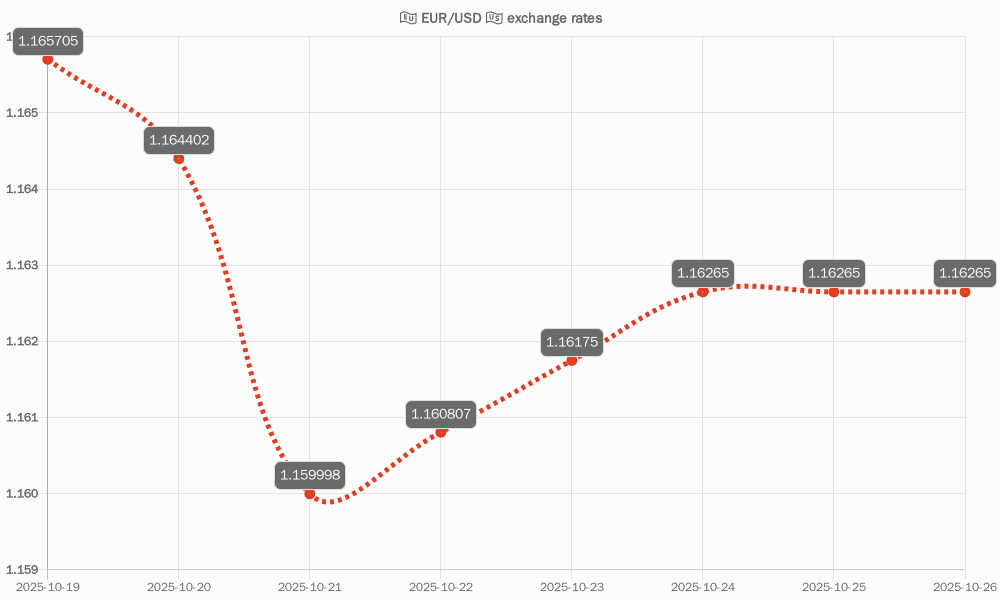 Today's EUR/USD exchange rate: 1 EUR = 1.16265 US-Dollar ⬇️