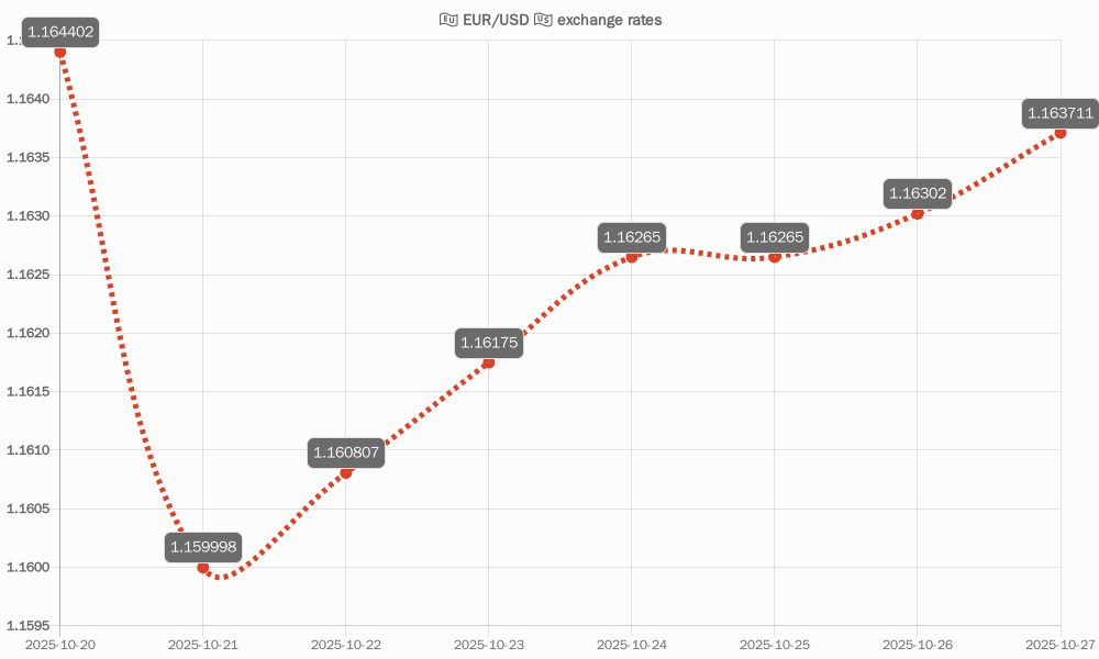 Today's EUR/USD exchange rate: 1 EUR = 1.163711 US-Dollar ⬆️
