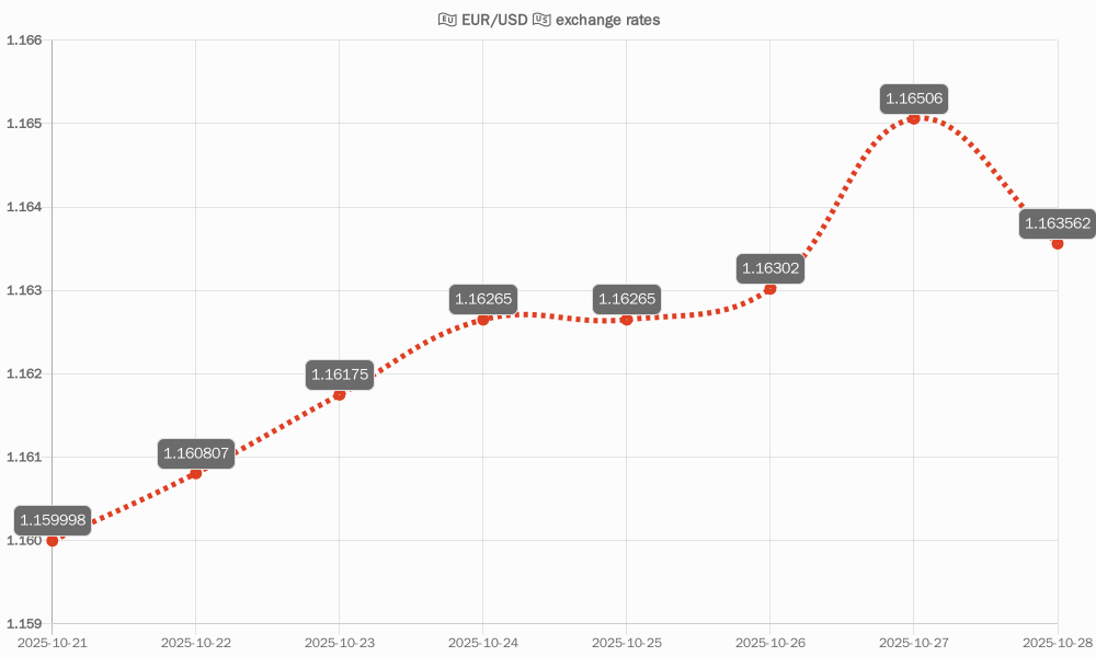 Today's EUR/USD exchange rate: 1 EUR = 1.163562 US-Dollar ⬇️