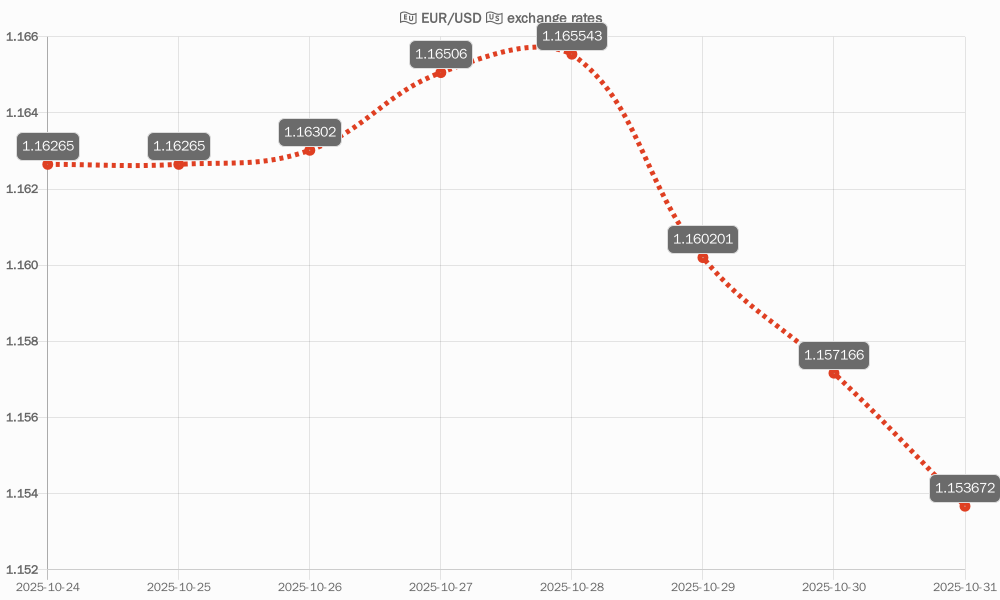 Today's EUR/USD exchange rate: 1 EUR = 1.153672 US-Dollar ⬇️