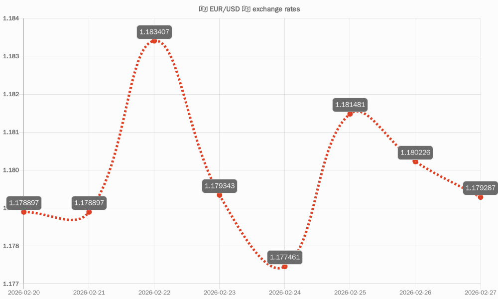 Today's EUR/USD exchange rate: 1 EUR = 1.179287 US-Dollar ⬇️