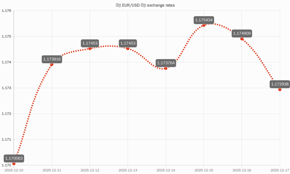 Today's EUR/USD exchange rate: 1 EUR = 1.172938 US-Dollar ⬇️